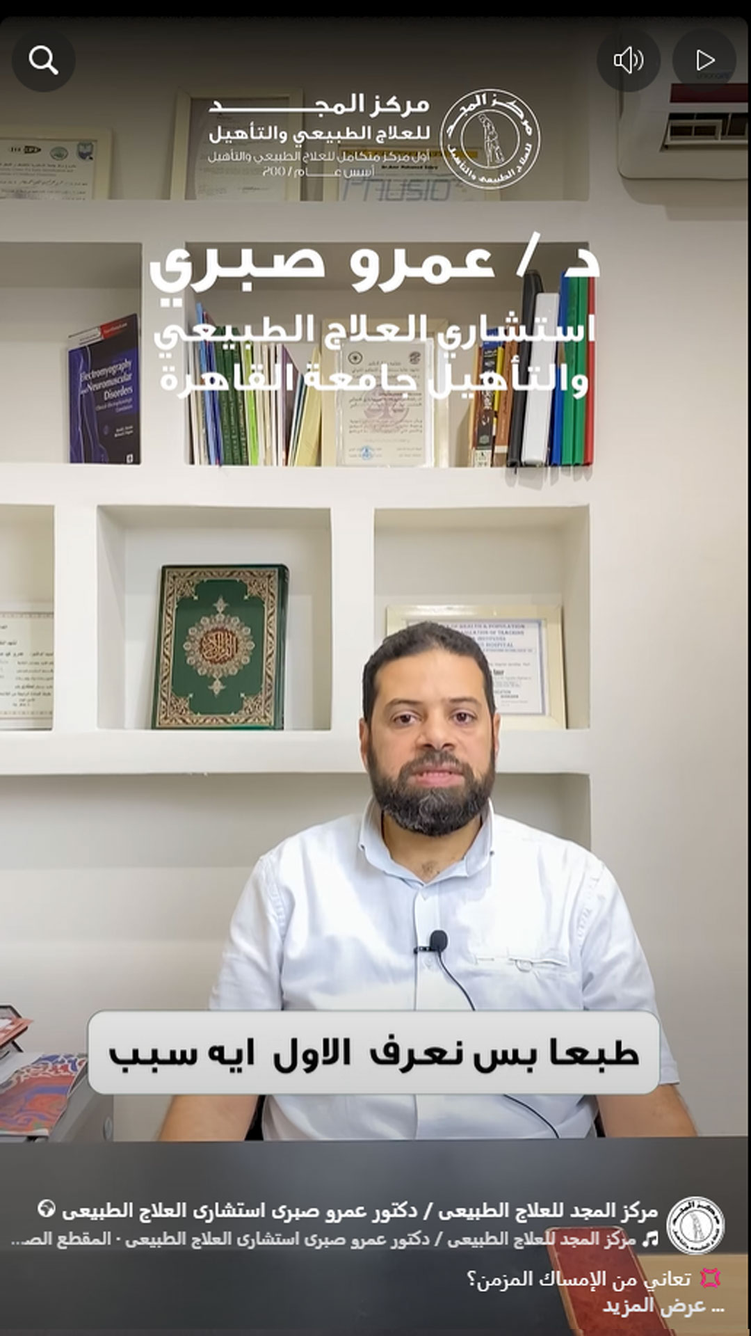 مركز المجد للعلاج الطبيعي والتأهيل هو وجهتك المتخصصة لاستعادة الحركة، تخفيف الألم، وتحسين جودة الحياة. تحت إشراف الدكتور عمرو صبري – استشاري العلاج الطبيعي والتأهيل، حاصل على الماجستير والدكتوراه من جامعة القاهرة – نقدم رعاية متكاملة مبنية على أحدث الأسس العلمية والتقنيات الحديثة في مجال العلاج الطبيعي.